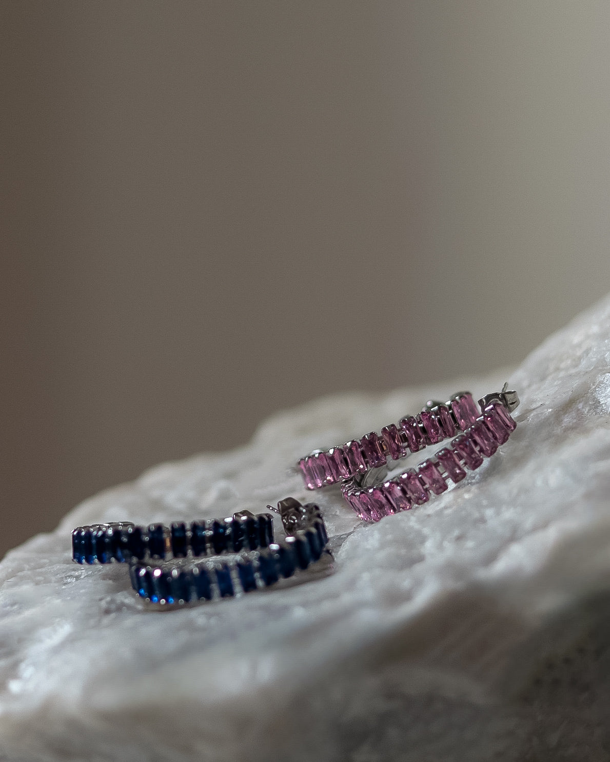 Os brincos Zyra destacam-se pelo seu brilho intenso e design moderno. A pedra de zircónia reflete a luz de forma sofisticada, criando um equilíbrio perfeito entre elegância e atitude. Ideais para quem gosta de acessórios marcantes e cheios de estilo, sem abrir mão da versatilidade.