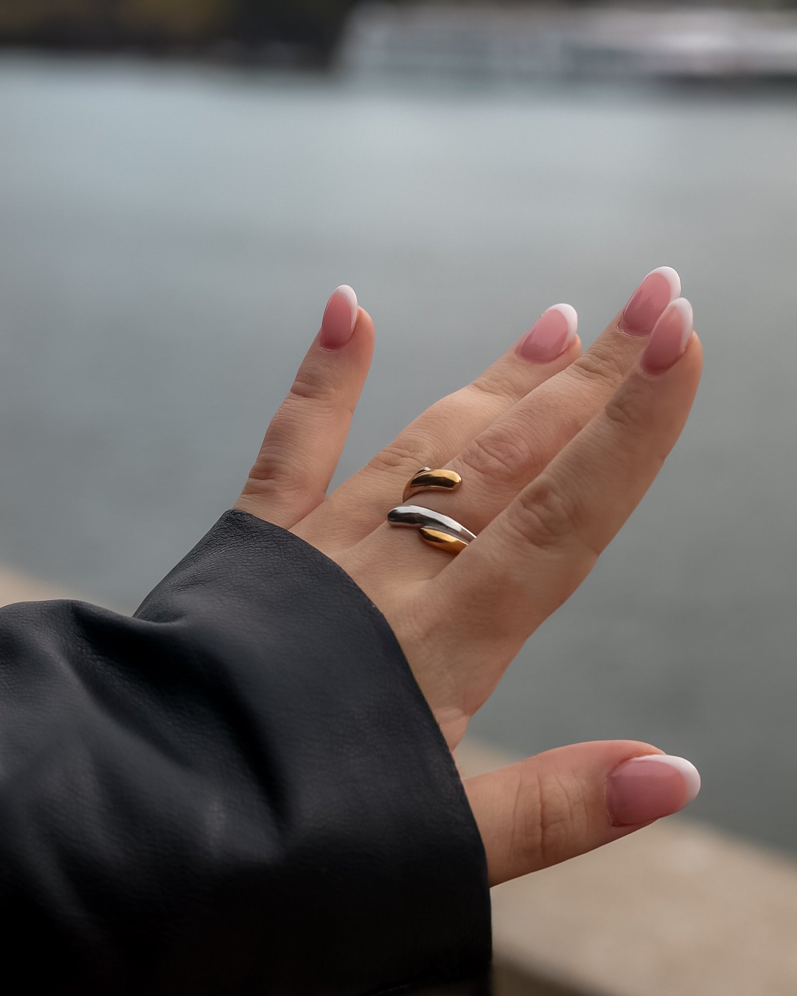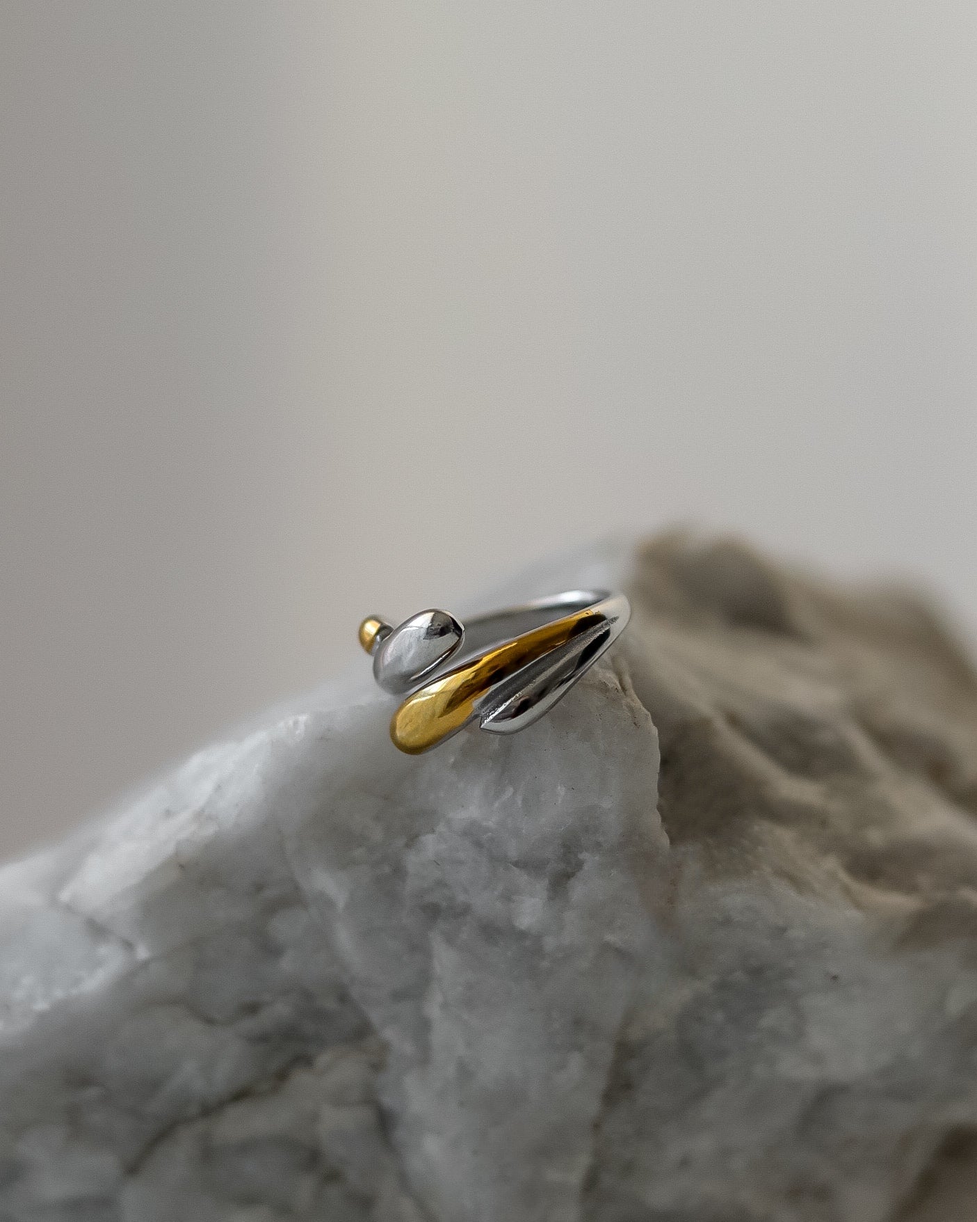 O anel Dúo combina o melhor de dois mundos: prateado e dourado, criando um design elegante e moderno que se adapta a qualquer estilo. Com acabamento polido e resistente, este anel em aço inoxidável mantém o seu brilho e durabilidade ao longo do tempo.