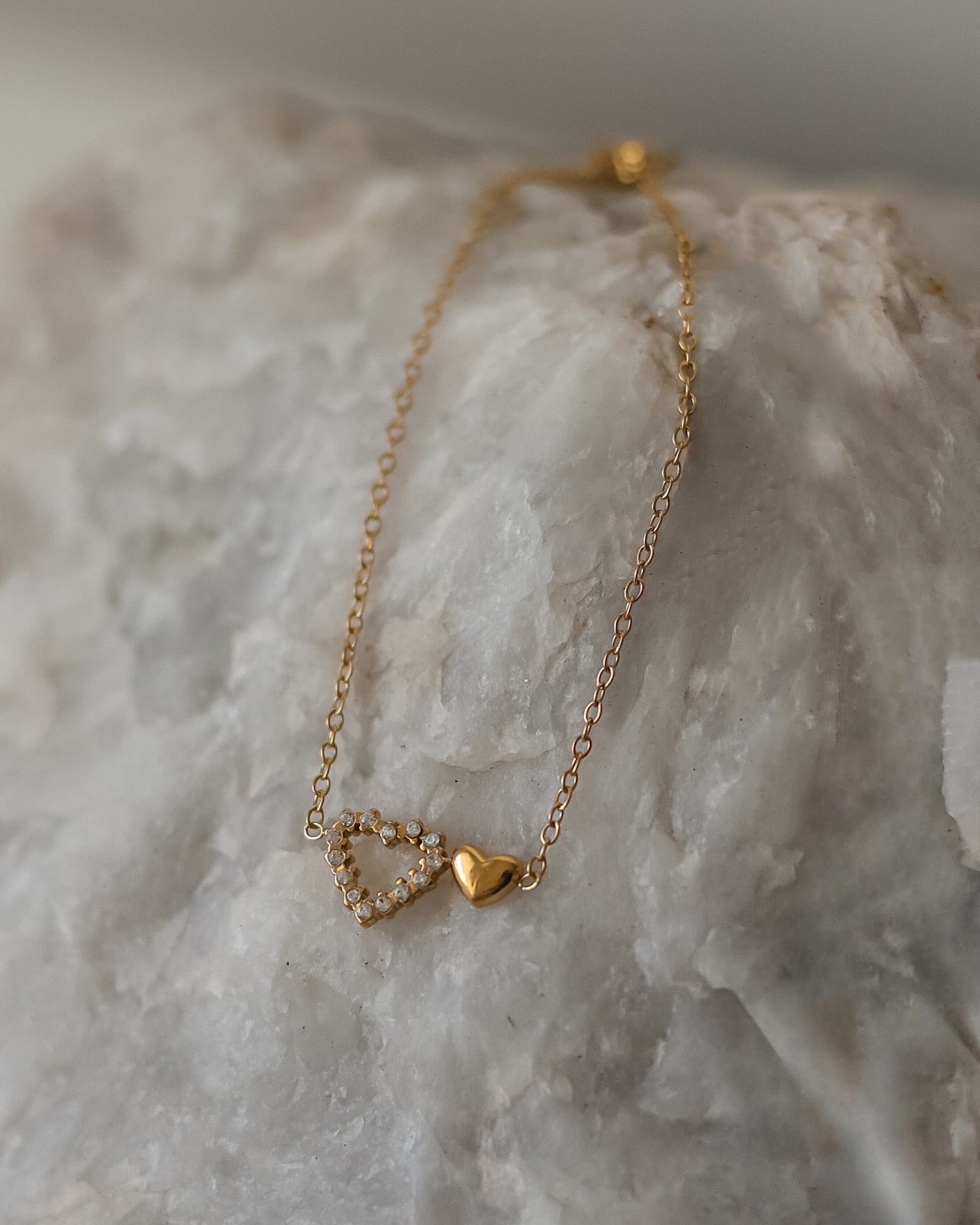 A Pulseira Dua reflete a beleza das duas formas do amor — um coração com brilhantes, cheio de luz e energia, e outro mais pequeno, simples e puro. Juntos, simbolizam o equilíbrio entre intensidade e calma, força e delicadeza.